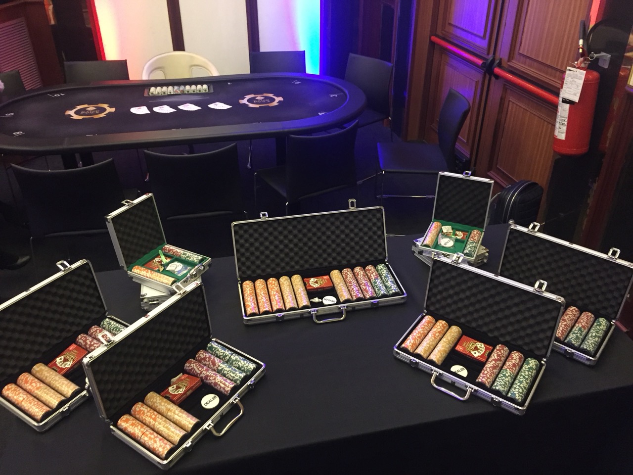 Decorazioni: Fiches, carte da gioco giganti, dadi, poster di Las Vegas. Al